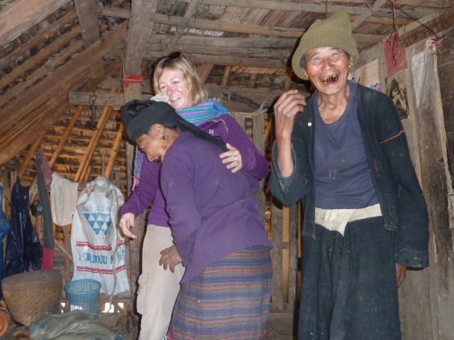 Desiring a break from the tourist trail, we then jumped on a plane to Kyaing Tong in the heart of the Golden Triangle near the Thai and Chinese borders, and landed in the middle of a New Years Festival by the Akha tribe…a very colorful Christian group. The next two days were spent trekking into hill tribe territory – featuring lunch in the chief’s house in a gorgeously perched village and tea, moonshine, betel and dancing with the local shaman (priest and traditional healer) in another. Our time came to an end as we celebrated New Years in Yangon with thousands of young, singing, drinking, guitar playing and dancing Burmese parading the Lake promenade. Let’s just say that two blonde girls were the photo stars of many people’s New Years!