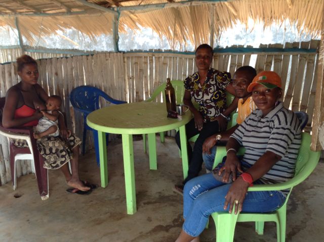 Germaine (in orange hat) and friends in her bar