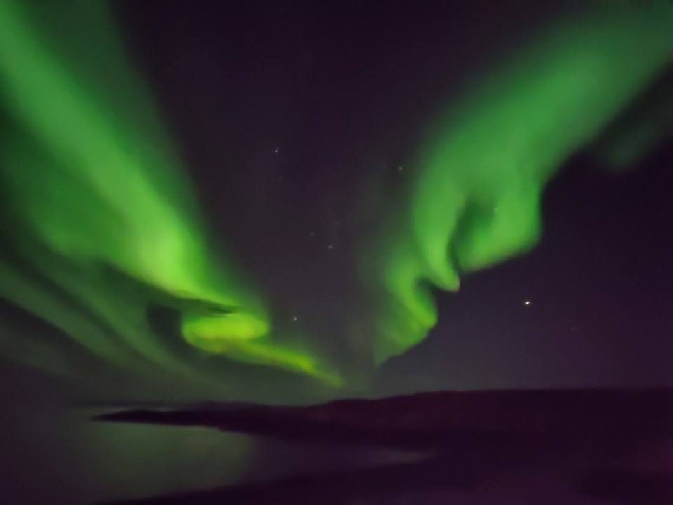 Another highlight was a boat tour to an abandoned settlement β in the 60βs the Danish government forcibly moved inhabitants from small settlements into the bigger cities as they are very expensive to maintain. A bonus was the whale and seal pod spotting on the way back. The other boat tour we did was to see the Northern Lights. At this time of year so far north the Lights are very common, and you can actually see them from right in Nuuk, which we did on other nights. Itβs an incredibly special experience to sit watching the dancing green (and occasionally pink) lights in awe at the wonder of nature.